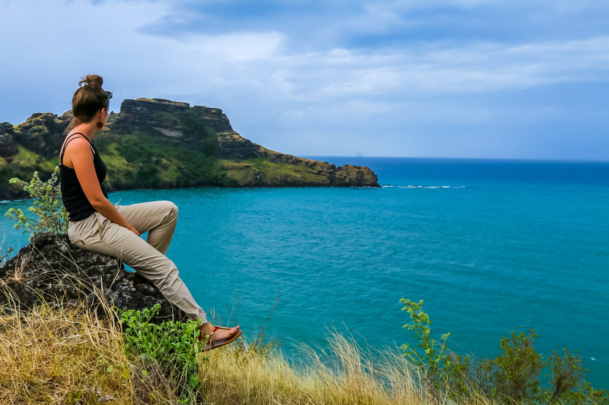 Casana ? courage en comorien ! et il m’en faudra pour ces 20 dernières petites minutes. 3 minutes avant mon arrivée, je vois Djilé au sommet, tout souriant et qui m’envoie une dernière bonne dose d’ondes positives… Je compte jusqu’à 10, et me voici devant l’un des plus grands cratères du monde, mon cœur palpite, mon corps se relâche, mes émotions aussi… tant d’effort pour une pure merveille de la nature. Je suis époustouflée devant autant de beauté. Vous l’aurez compris, le Karthala c’est une rencontre avec vous-même, une saveur particulière et une marche dont vous vous souviendrez toute votre vie. Nous continuons de crapahuter et tombons sur d’autres cratères plus petits mais tout aussi magnifiques.